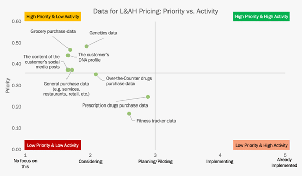 Figure 10: Insurers’ priority and activity levels in using new data sources for L&AH insurance pricing