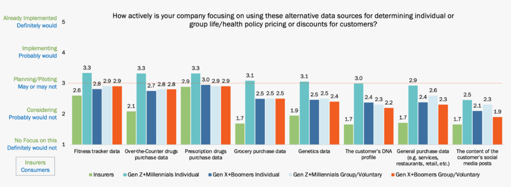 Our 2024 Consumer Research indicated an openness in using personal data sources to develop more accurate personal risk profiles for individual or group life/health policy pricing. In fact, customers are most willing to share data from fitness trackers and purchases of over-the-counter and prescription drugs to achieve this.