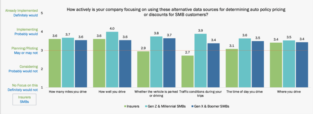 Figure 5: Insurers’ activity levels compared to SMBs’ perceptions on using new data sources for auto insurance pricing