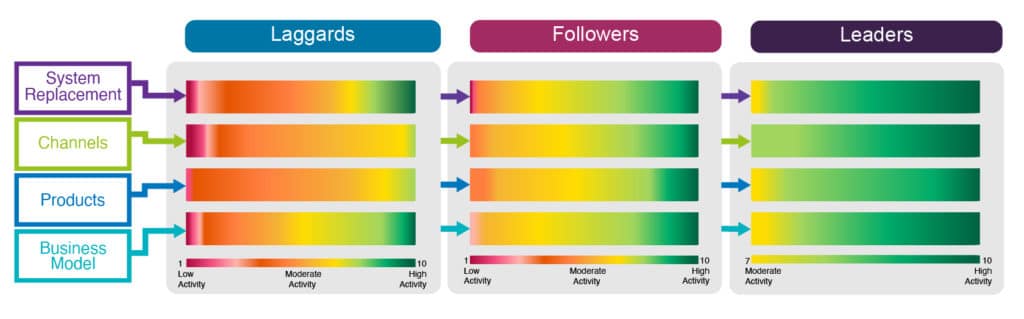 The cumulative impact of these creates a gap for Laggards which is serious and potentially impossible to bridge, putting their future at significant risk. Fortunately, Followers are still in the game with options to compete. But staying focused on these areas will be crucial to avoid a widening gap for them.