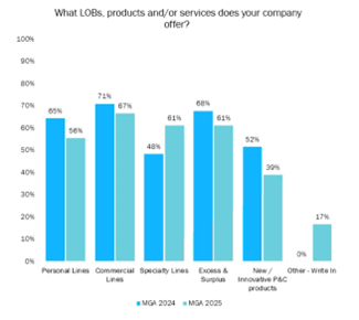 When we asked the MGA’s that we surveyed where they are focusing as it relates to lines of business and risks, the responses are fairly similar to last year. Specialty lines have really grown in focus in the last year, which in many cases could also represent some different types of products that they are bringing to market.